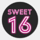 Pegatina Redonda Neon Sweet de moda Dieciséis de rosa caliente y ne
