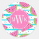 Pegatina Redonda Neon Watermelon on Stripes Pattern