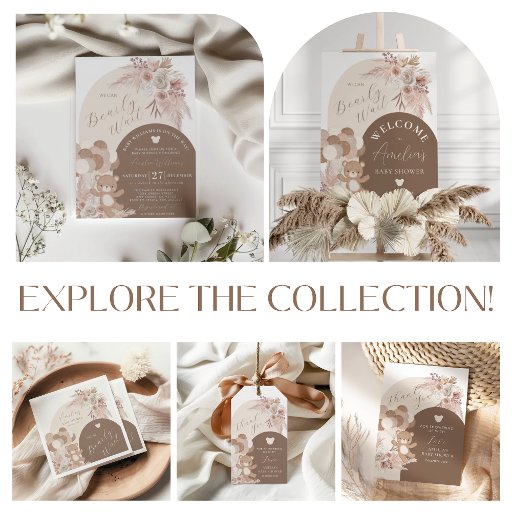 Boho Beige Gender Neutral Teddy Bear Baby ShowerDiseñado por Anna ArtDesign