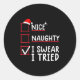 Pegatina Redonda Nice Naughty I Swear I Tried Christmas