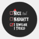 Pegatina Redonda Nice Naughty - I Swear I Tried Christmas List