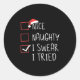 Pegatina Redonda Nice Naughty I Swear I Tried Christmas Santa Claus