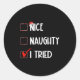 Pegatina Redonda Nice Naughty I Tried Christmas List Xmas Santa Cla