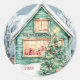 Pegatina Redonda Nieve en árbol de Navidades de encanto rústico