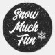 Pegatina Redonda Nieve Muy Divertida, Copos De Nieve En Negro