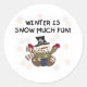 Un lindo y gordito muñeco de nieve disfruta de la caída de los copos de nieve y el texto dice "¡Invierno es Nieve muy Divertido!" en tarjetas de felicitación de hombres de nieve de vacaciones, bolsas de té, mousepads, tazas, imanes, camisetas y otros artículos de vacaciones. ¡Tú también puedes personalizares!