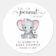 Pegatinas amables para los favores de ducha de bebé y correspondencia con "A Sweet Little Peanut Is On Her Way" escrita en una mezcla de tipografía gris suave y un guión elegante, y una acuarela rosa pastel de una niña elefante. Personalice el nombre y la fecha de ducha de la futura madre en una simple tipografía gris.