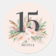 Pegatina Redonda Niña rosa acuarela floral edad elegante cumpleaños