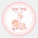 Pegatina Redonda Niña Rosa Simchat Bat Hebrew Mazel Tov
