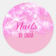 Pegatina Redonda Niñas purpurinas rosadas y nails añaden nombre a s