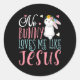 Pegatina Redonda Ningún Conejo Me Ama Como Jesús Chica Cristiano De
