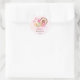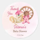 Niñita de la vaquera en el camino caballos rancho de granja occidental de la ducha bebé gracias a los favores de los pegatinas. Caballo beige lindo con un gorra de vaquera rosado, botas rosadas, una rueda, escritura rosada y una cinta túnica.