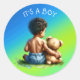 Pegatina Redonda Niño afroamericano con Teddy Baby Shower