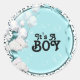 Pegatinas "redondos", modernos y divertidos, con dos osos de peluche blancos, globos y un fondo de impresión animal "negro y blanco", con una entrada azul pastel para la redacción personalizado. IDEAL PARA - Sobre de ducha para bebé o precintos para regalo, para anuncios de nacimiento o revelación de sexo fiestas. PETICIONES DEL personalizado - Para obtener ayuda, productos coincidentes o cambios de color, póngase en contacto conmigo en clientrequestrw@gmail.com en Zazzle