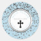 Pegatina Redonda Niño Bebé Plata Azul Favor Religioso Personalizado