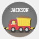 Pegatina Redonda Niño Constructor de Camión Rojo