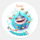 Pegatina Redonda Niño de verano de tiburón mate