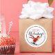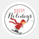 Pegatina Redonda Niño en Esquiador Rojo Feliz feriado / Blanco