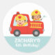 Pegatina Redonda Niño luchador contra incendios en la fiesta de cum