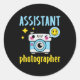 Pegatina Redonda Niños Chicas de fotógrafos asistentes Niños Pequeñ