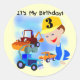 Pegatina Redonda Niños Construcción 3 camisetas de cumpleaños y reg