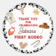Cumpleaños de Cowboy 1.ᵉʳ cumpleaños de Rodeo favorece a los pegatinas. Este diseño presenta varios elementos de temática vaquera y algunos cactus, así como un patrón de impresión de piel de vaca o vaca. ¡Todo el texto es editable en este cumpleaños de tono neutro con temática de vaquero! Encuentre artículos de personalizable completos en nuestra tienda.