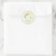 Los niños personalizados Rainbow Sunshine Classic Round Pegatina son el toque final para su ducha de bebé con temática de sol. Las etiquetas tienen el nombre de la madre, la ducha de bebé y la fecha. Todo sobre un fondo amarillo texturado.