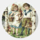 Pegatina Redonda Niños victorianos Semana Santa Conejito Chick Egg