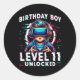 Pegatina Redonda Nivel 11 Desbloqueado Funn Jugador de Cumpleaños d