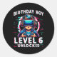 Pegatina Redonda Nivel 6 Desbloqueado 6 años de edad Jugador de cum
