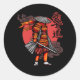 Pegatina Redonda Niza Retro Samurai - Samurai sostiene Katana