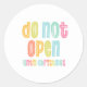 Esta divertida pegatina de vacaciones redondas te traerá una sonrisa en la cara. Tiene las palabras "no abras hasta Navidad" escritas en letras coloridas. Úsalo como un toque final para su envoltura de regalo.