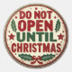 Trae calor y alegría a tu temporada de vacaciones con nuestro diseño pegatina "No abras hasta los Navidades". Perfecto para quien ame el espíritu festivo de los Navidades. Una adición divertida a tus tarjetas de vacaciones o regalos de Navidad.