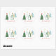 Pegatina Redonda No hay acuarelas de Peeking Árboles de Navidad