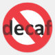 Dile no al café descafeinado. Detén el decaf. Termina el café decaf asado. La palabra "decaf" está cubierta con un símbolo rojo prohibido (círculo con una línea a través de él). Solo di "no" a decaf.