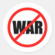Esta obra de arte muestra la palabra guerra tachada dentro de un círculo.