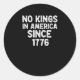 Pegatina Redonda No Kings In America Since 1776 Democrats Patriotic