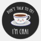 ¡No Me Hables! Soy Chai. Este adorable y divertido accesorio de amante del té kawaii chai es genial para hombres o mujeres que aman beber chai picante, pero son un poco tímidos. Perfecto para un bebedor de té introvertido, y para todo aquel que ame un buen juego de palabras. Si eres antisocial e introvertido, pero te encanta beber té y chai, y te encantan los puns, ¡este diseño es para ti! Muestra una imagen de una taza de chai con una cara de kawaii que se ruboriza.