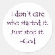 Pegatina Redonda No me importa quién lo inició - basta. -Dios