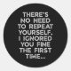Pegatina Redonda No Need Repeat Yourself I Ignored You Funny Saying