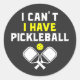 Pegatina Redonda No puedo tener pickleball, Pickleball Lover