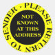 Un pegatina de remitente útil no conocido / devuelto al remitente. Diseñado para captar la vista (usted quiere que el cartero se dé cuenta de esto) Limpio y fácil de leer, utilizando un elegante tipo de letra claro que hace que el mensaje sea claro. Desafortunadamente, el robo de identificación y el uso fraudulento de direcciones residenciales para adquirir crédito es bastante común en estos días, lo que significa que es importante devolver todo el correo mal dirigido antes de que las cosas se salgan de control. NB el color de fondo de esta versión de este diseño se puede personalizar.