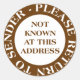 Un pegatina de remitente útil no conocido / devuelto al remitente. Diseñado para captar la vista (usted quiere que el cartero se dé cuenta de esto) Limpio y fácil de leer, utilizando un elegante tipo de letra claro que hace que el mensaje sea claro. Desafortunadamente, el robo de identificación y el uso fraudulento de direcciones residenciales para adquirir crédito es bastante común en estos días, lo que significa que es importante devolver todo el correo mal dirigido antes de que las cosas se salgan de control.