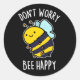 Pegatina Redonda No te preocupes por ser feliz gracioso Bee Pun osc