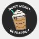 Pegatina Redonda No te preocupes por ser Frapy Frappuccino Pun Dark