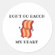 "No me toques el corazón" es un juego de palabras que combina "romperme el corazón" con "tocino". Es un juego de palabras con temas gastronómicos que es popular en artículos de novedad y a menudo se usa como una expresión linda entre personas que comparten amor por el tocino y aprecio por los juegos de palabras. La frase ganó popularidad en los últimos años como parte de la tendencia más amplia del humor relacionado con la comida y la mercadería con temas de tocino.