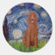 Pegatina Redonda Noche estrellada - Póodle estándar rojo oscuro #1