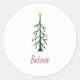 Modern Merry Christmas Believe pegatina de vacaciones con un árbol de siempre verde y diseño de tipografía simple. Con letras de tipografía de personalizable añades tu propio texto. ¡Ideal para desear a sus seres queridos unas Felices Fiestas!