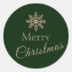 Añada un toque de elegancia a sus paquetes de correo de vacaciones con este hermoso pegatina redondo. El fondo verde oscuro está adornado con un copo de nieve dorado cepillado en la parte superior, simbolizando la serena belleza de la temporada. Debajo, "Feliz Navidad" se presenta elegantemente en tipografía clásica y escritura, capturando el espíritu de tranquilidad y buena voluntad. Perfecto para añadir un toque más sincero a sus saludos festivos, estos pegatinas son una forma encantadora de difundir alegría y calor en esta temporada de fiestas. Utilícelos para sellar sobres, decorar envolturas de regalo o adornar favores de vacaciones. Eleva tu presentación de vacaciones con este diseño cautivador y significativo.