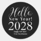 Pegatina Redonda Nochevieja Feliz Año Nuevo blanco y negro